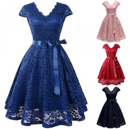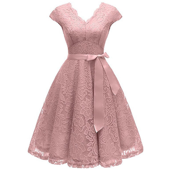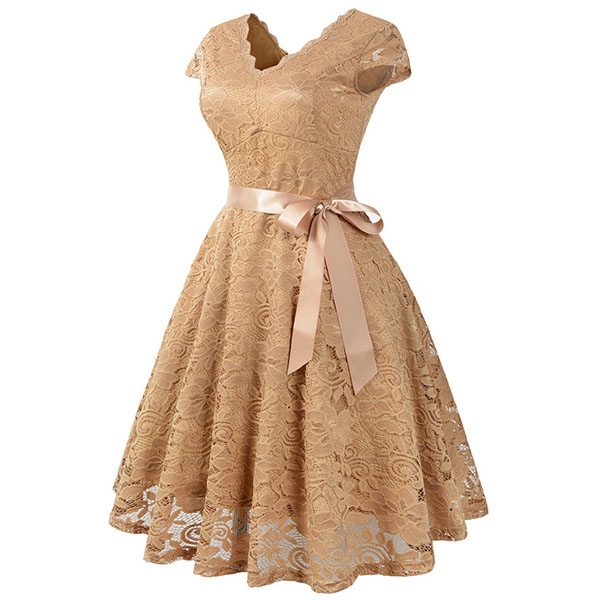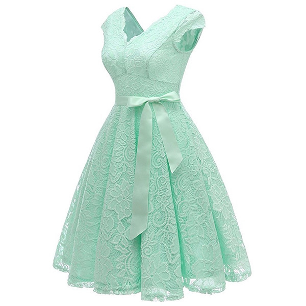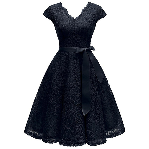 denna delikata spetsklänning kan ge dig en enkel övergång från dagtid till kvällsfester.