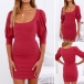 with this dress. It comes with a solid color,finished with half sleeve,U-neck and a fit silhouette,