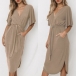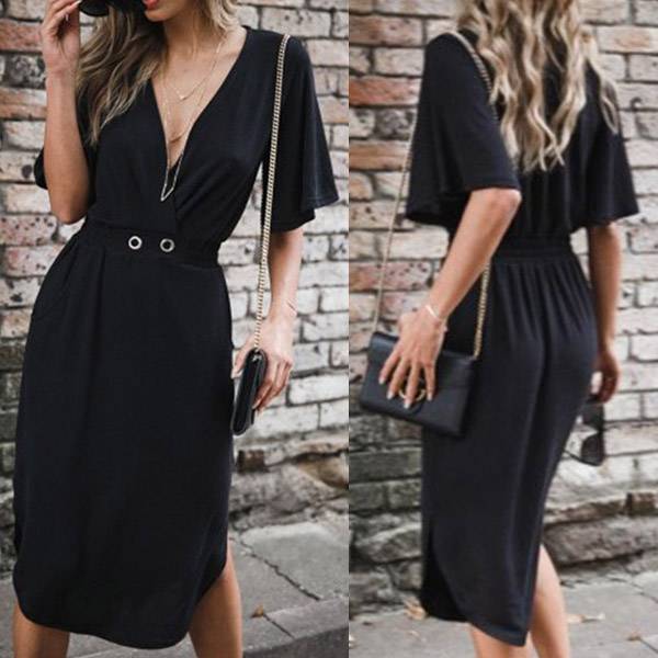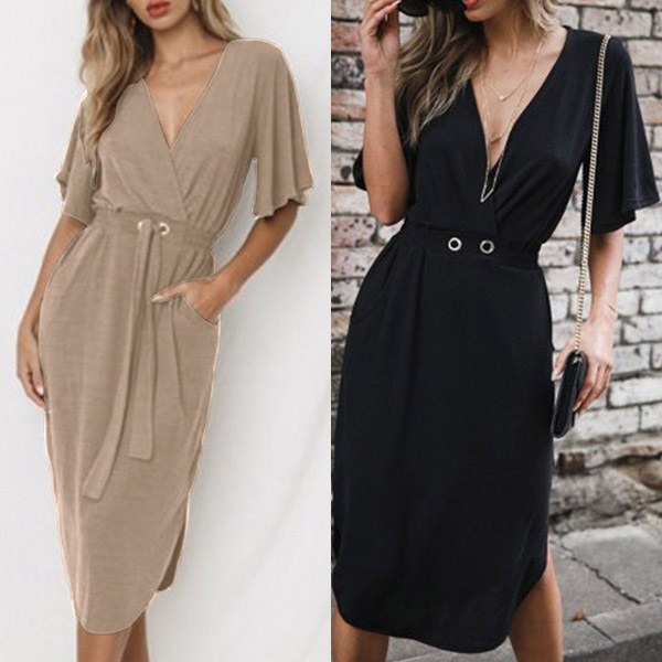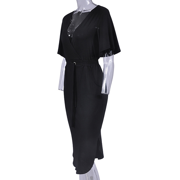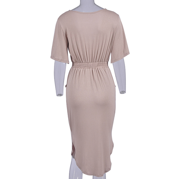 Crafted in a solid color,with half sleeve,v-neck and high waist design,this dress can express your beauty as