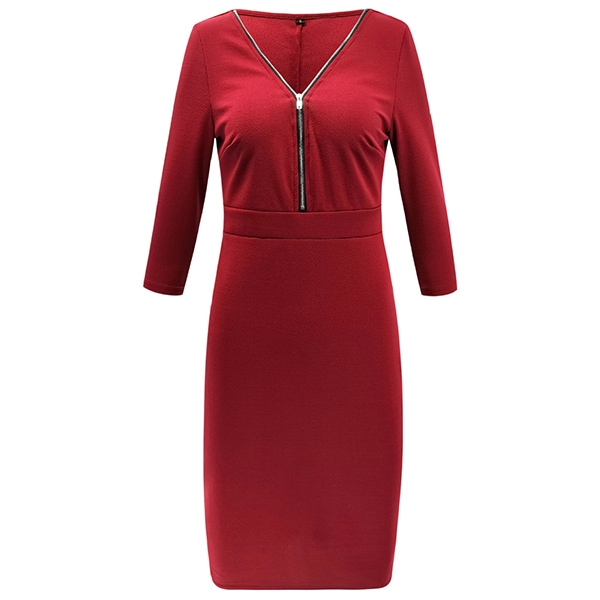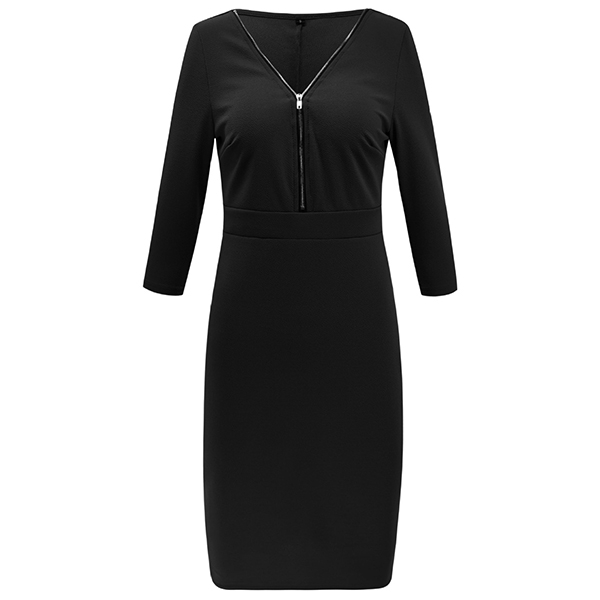 more attention. Boasts a solid color,finished with half sleeve,zipper v-neck and a fit silhouette,this dress
