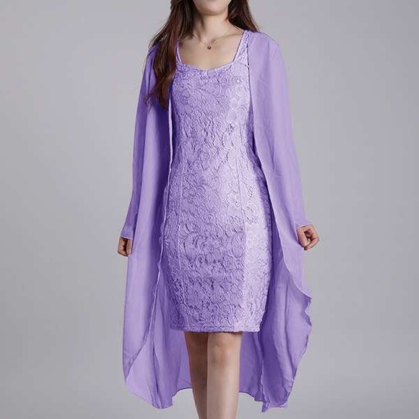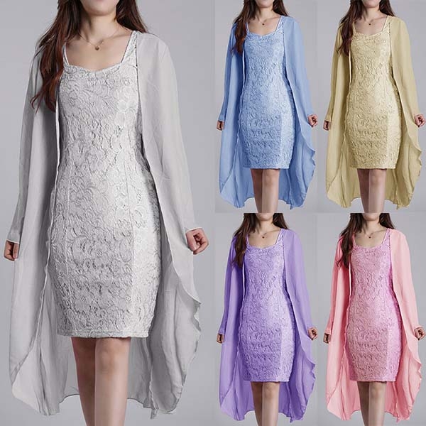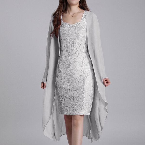 It consists a lace dress and a long sleeve cardigan,the fit silhouette design can showcase your slender