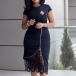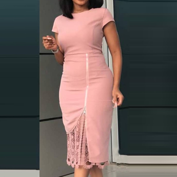 eyes focused on this delicate dress. Solid color style,elegant and generous. The lace spliced hem