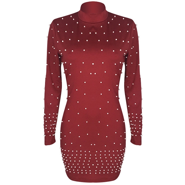 It is finished with long sleeve,mock neck and a tight silhouette,the beaded details will make it look