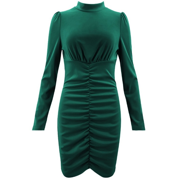 denna delikata klänning.Tillverkad i en enfärgad färg, färdig med lång ärm, mock-neck och en passform siluett,