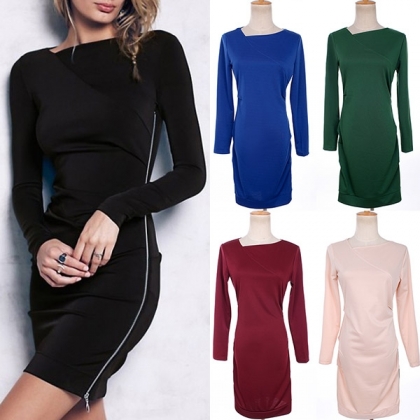 a solid color,generous yet elegant. And the side zipper and oblique collar design make this piece look