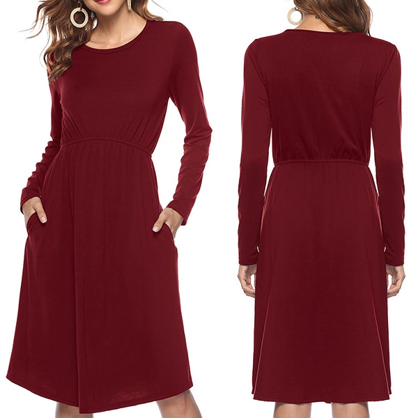 This dress comes with a solid color,which gives you an elegant and generous vibe. Finished with long sleeve,