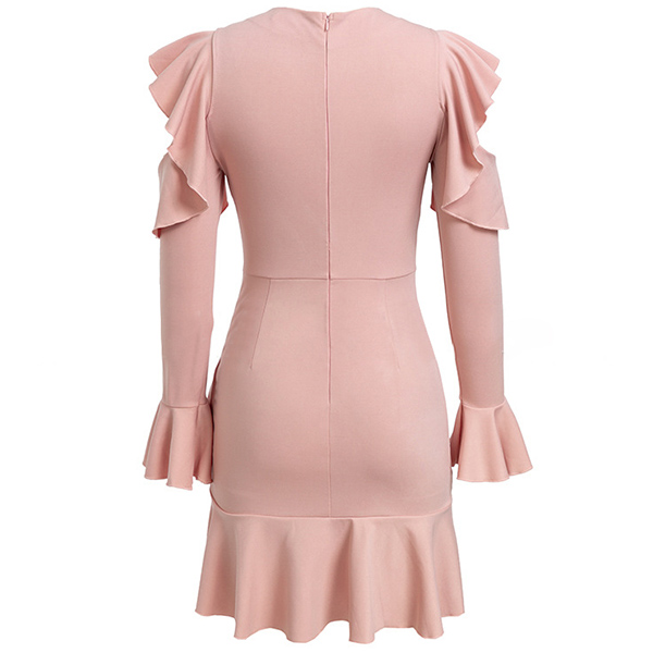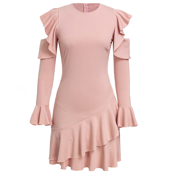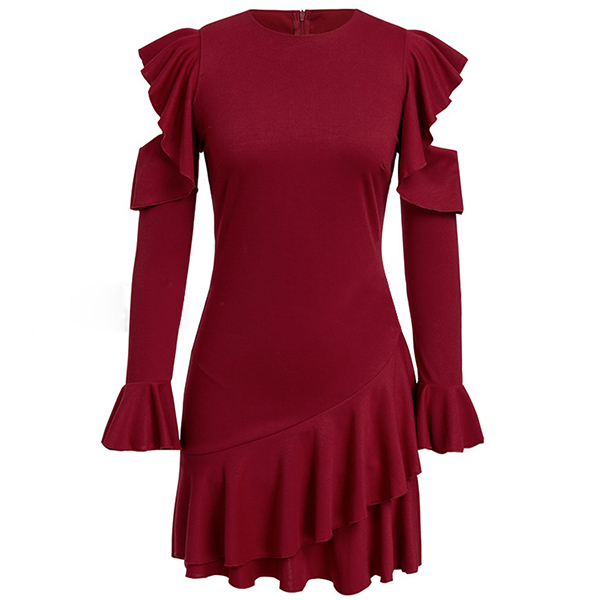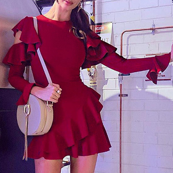 Comes with a solid color,the hollow out design at sleeve part and ruffle details make this dress look so