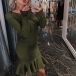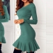 Solid color tone design makes it look simple,generous yet stylish,while the ruffle hem design will