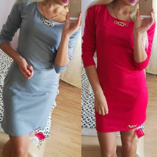 Designed for a stylish and charming look,this long sleeve dress features a round neckline,