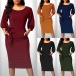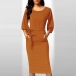 delicate dress. Boasts a solid color,with long sleeve,round neck and a fit silhouette,this dress is