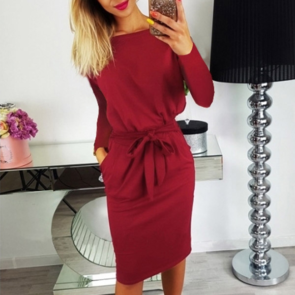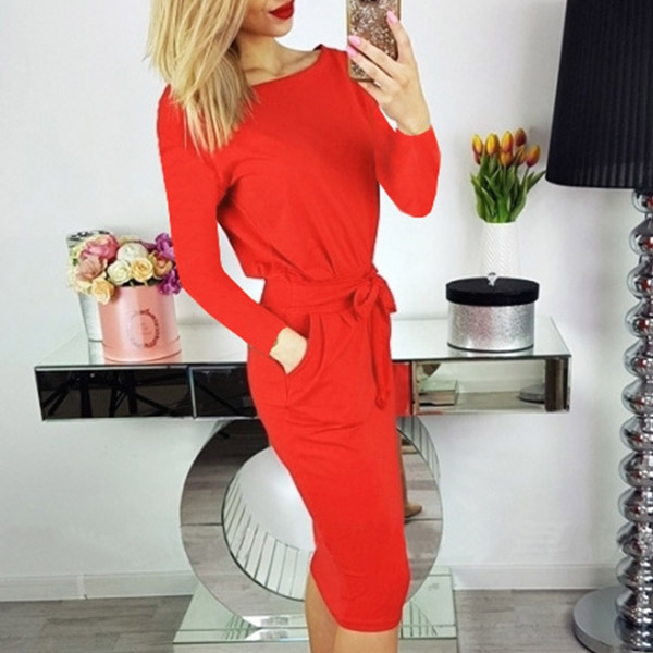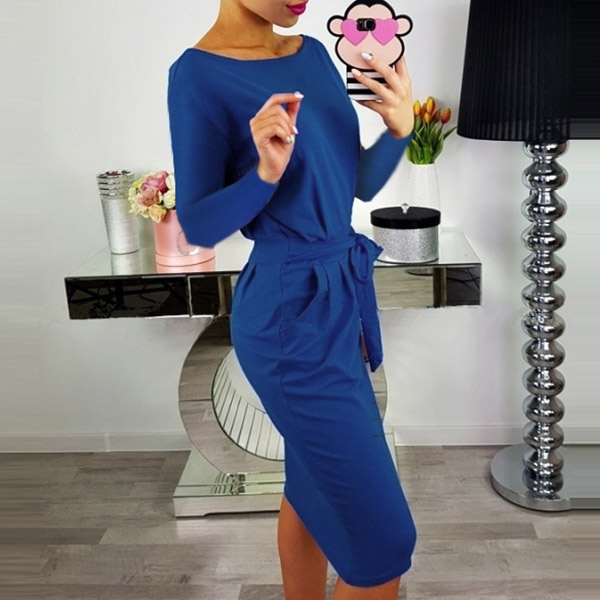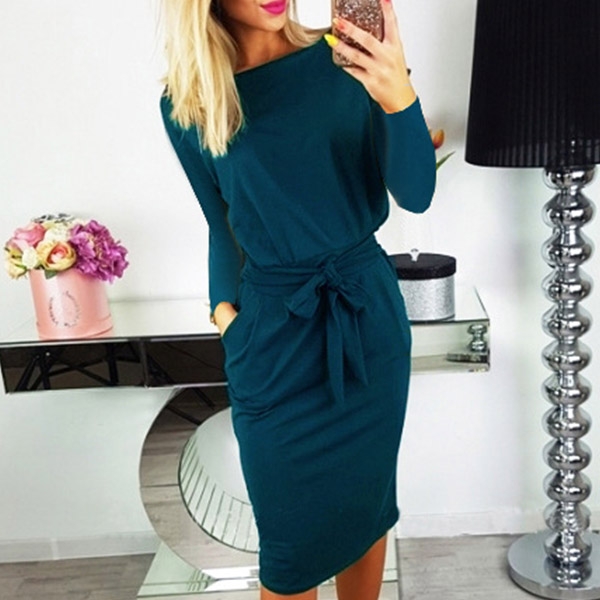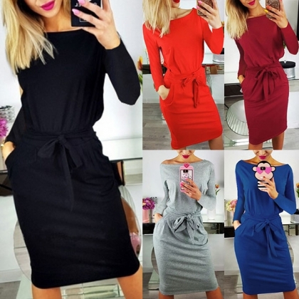 and waist strap design can better highlight your slender figure. Finished with long sleeve,round neck and