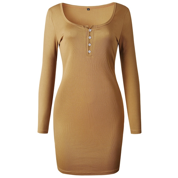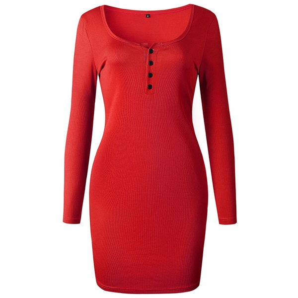 color,accompanied with long sleeve,round neck and a tight silhouette,this dress definitely can display