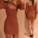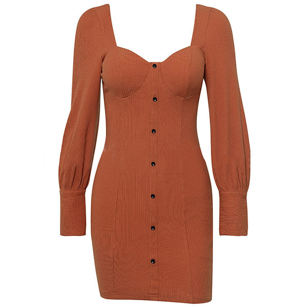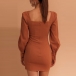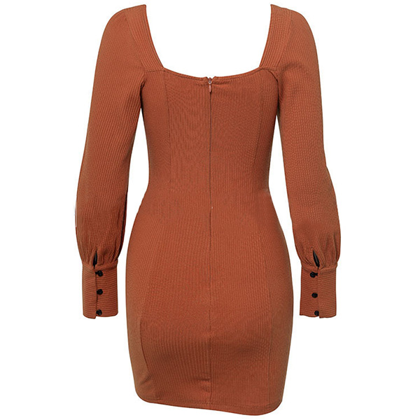 Boasts a solid color,finished with long sleeve,square collar and a fit silhouette,this dress knows how to showcase