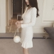 Wow,how could you become so elegant and charming in this knit dress? It features solid color style,