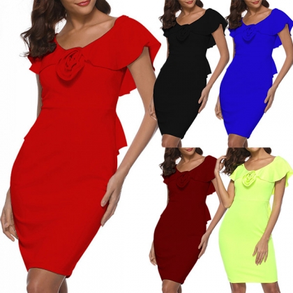 finished with v-neck,ruffle and a fit silhouette,this dress can showcase your showcase your charming