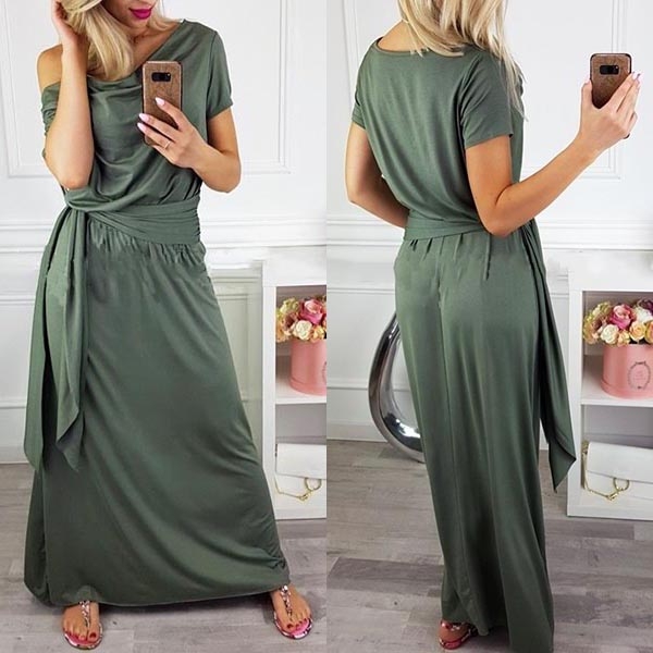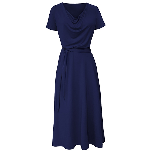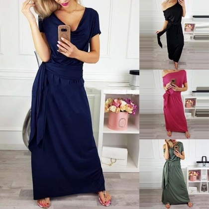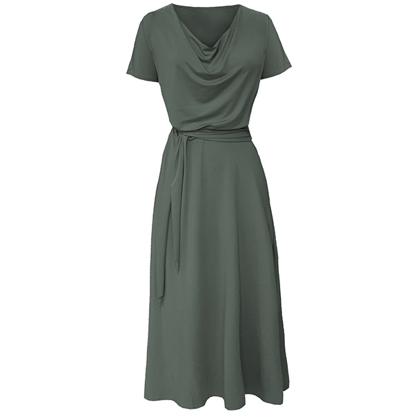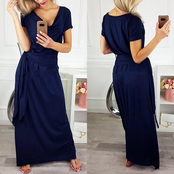 Elegant Solid Color Short Sleeve Cowl Neck Maxi Dress