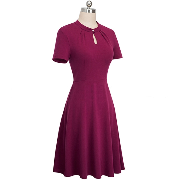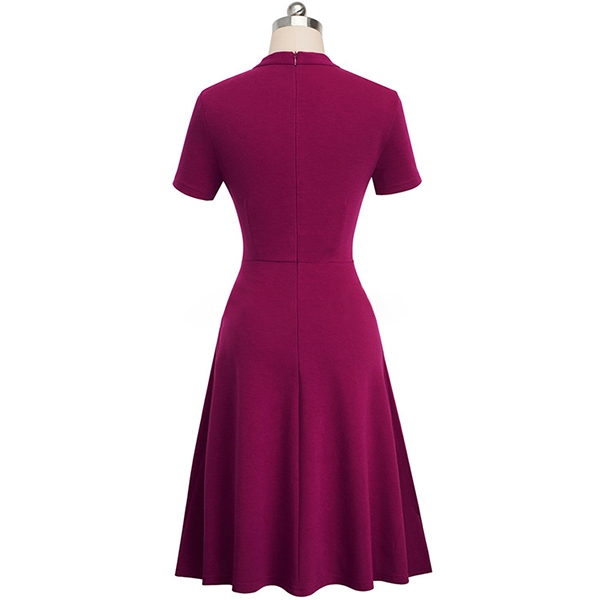 it look stylish and elegant. Finished with short sleeve,round neck and an A-line silhouette,this delicate dress