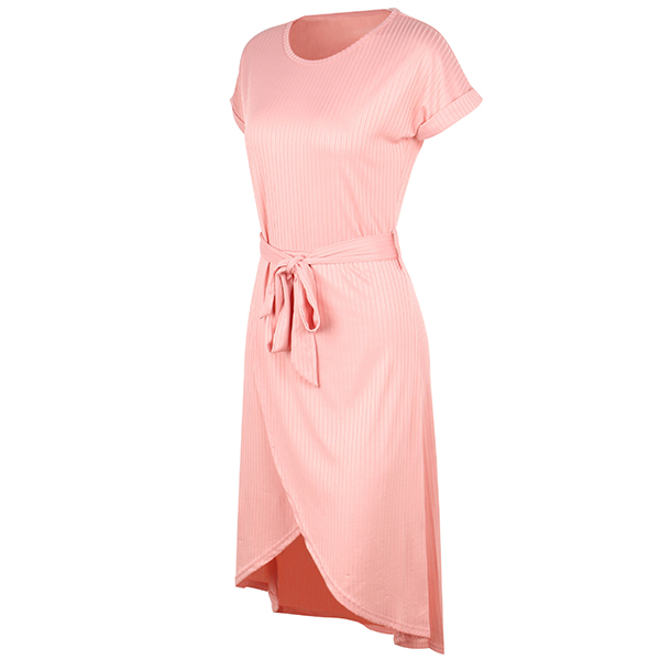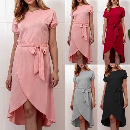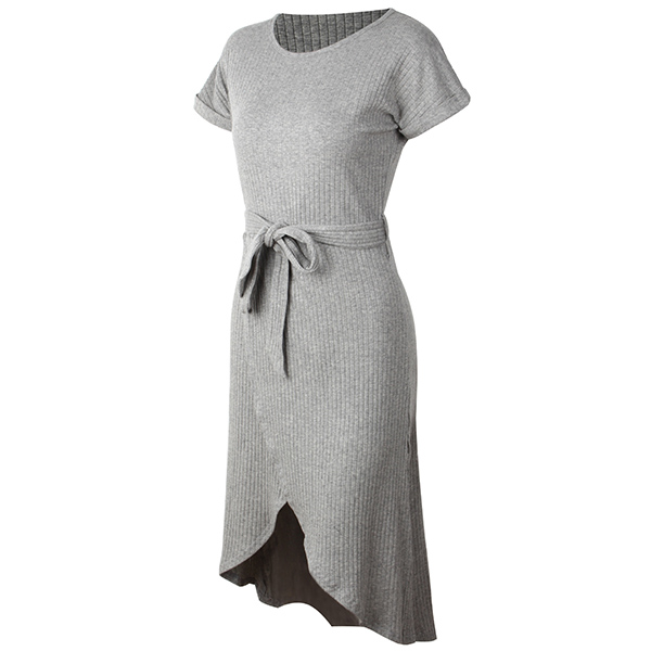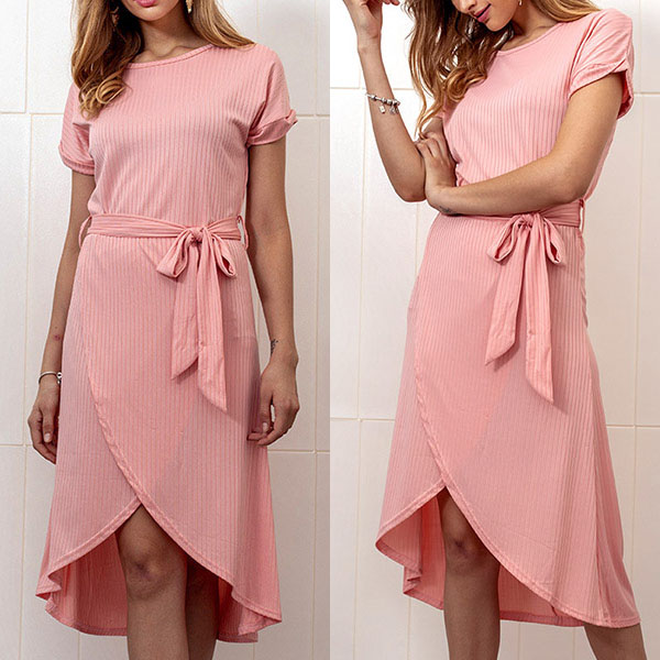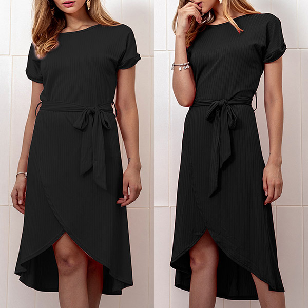 finished with short sleeve,round neck and an irregular hem,this dress can take you to different