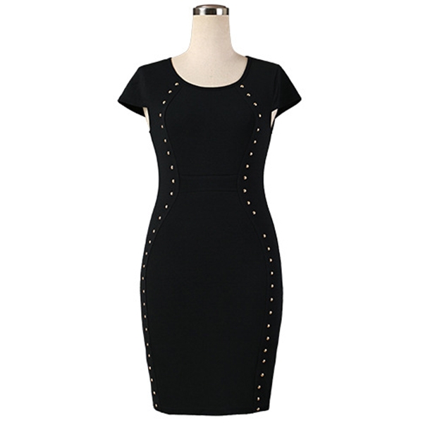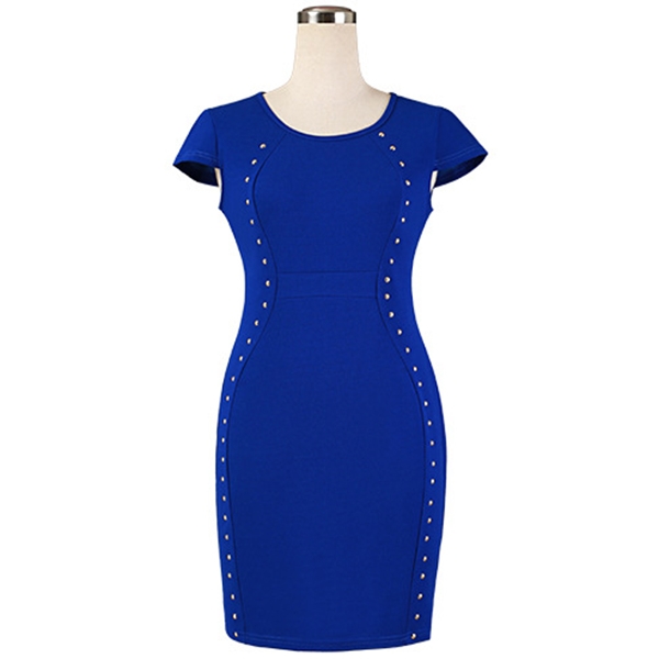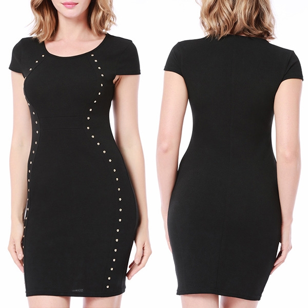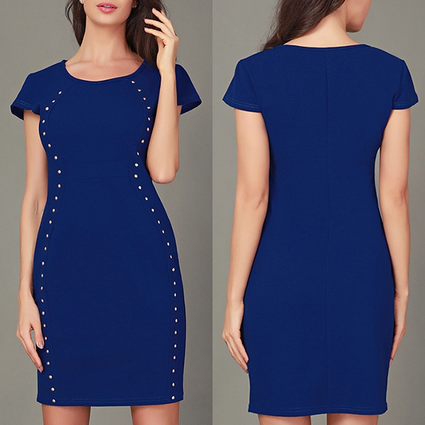 dress. Boasts a solid color,with short sleeve,round neck and a fit silhouette,simple but elegant and stylish.