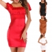 Crafted in a solid color,with short sleeve,square collar and a fit silhouette,this dress can take you to any