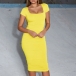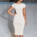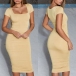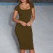 Elegant Solid Color Short Sleeve Square Collar Slim Fit Dress