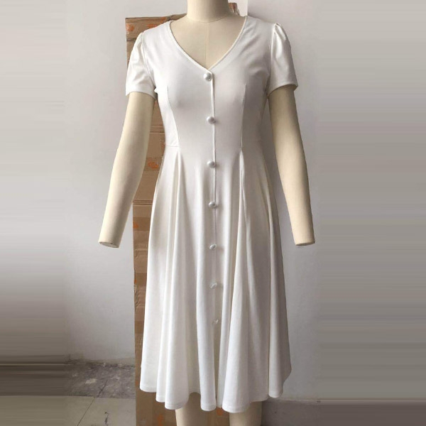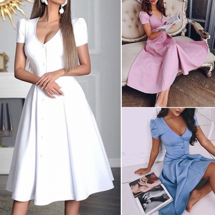 finished with short sleeve,v-neck and high waist design,this is a dress which can fit for