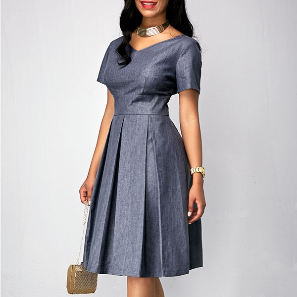 this delicate dress. It boasts a solid color,with short sleeve,v-neck and high waist design,this is a dress