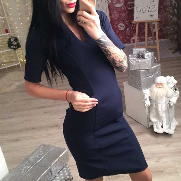 accompanied with short sleeve,v-neck and a fit silhouette,this dress knows how to portray your elegant image