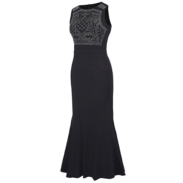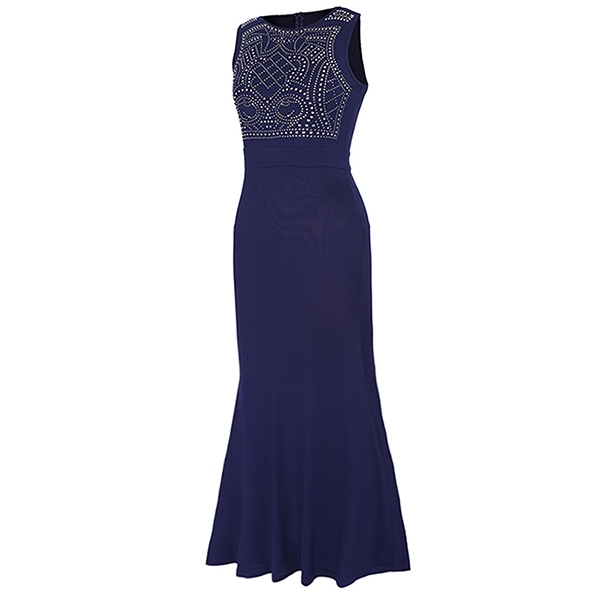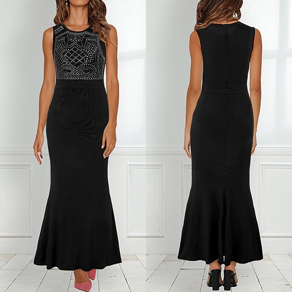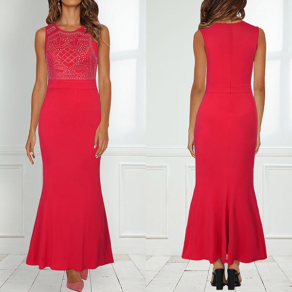 with sleeveless,round neck,high waist and a clean silhouette,this dress is sure to portray your elegant