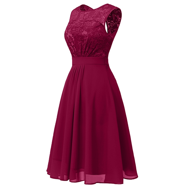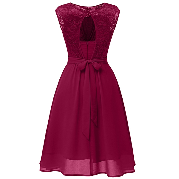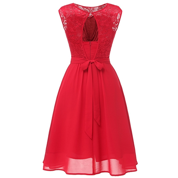 this piece. It comes with a solid color,with sleeveless,round neck,high waist and lace spliced design,