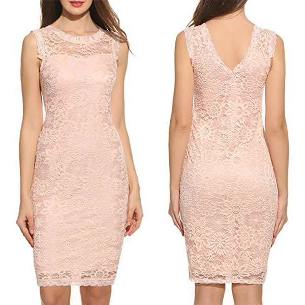 and elegant lace dress can express your beauty. Finished with sleeveless,round neck and a fit silhouette,