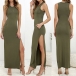 with sleeveless,round neck,slit hem and a maxi length,delicate and stylish. Save this dress for