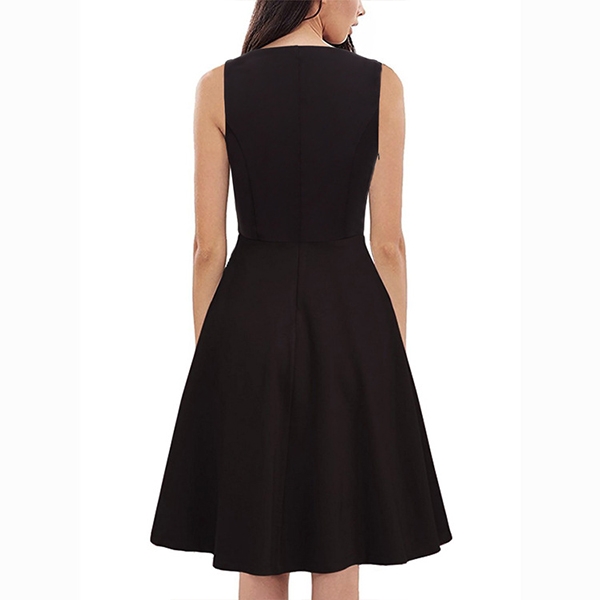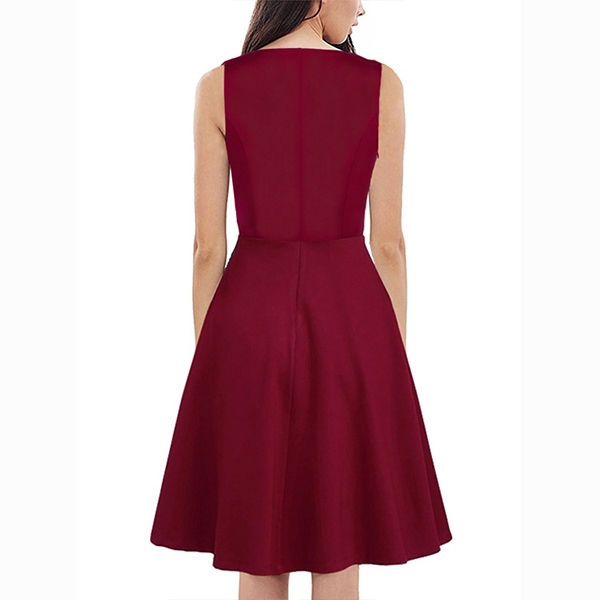 Boasts solid color,finished with sleeveless,v-neck,high waist and A-line silhouette,this simple yet