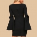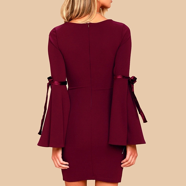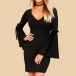 Solid color style,the v-neck and trumpet sleeve design can easily showcase your charming