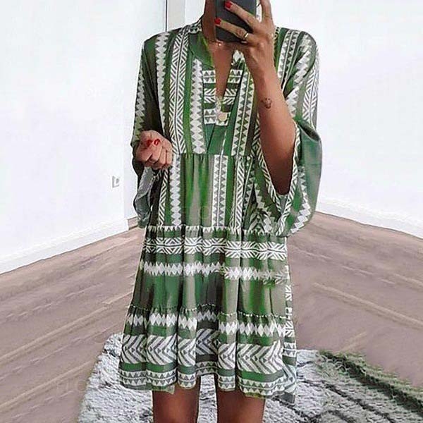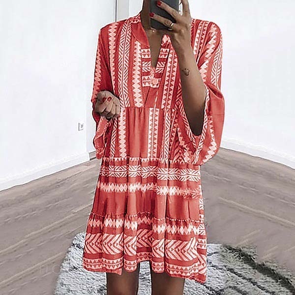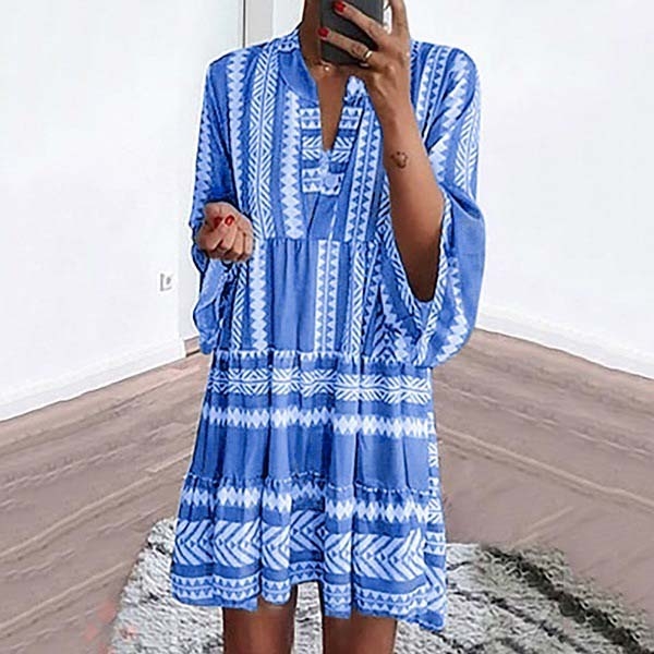 v-neck and a loose silhouette,this ethnic style dress is perfect fit for your beach days