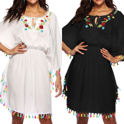 design details. The colorful tassel spliced and embroidered design are the highlights,which make this
