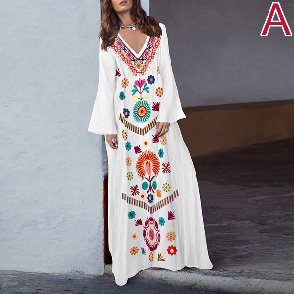För dina stranddagar eller tropiska semester, kan denna avslappnade klänning vara ditt bra val. Den etniska