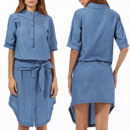 Ditch the busy lifestyle and finish the things with easy-going style in this laid-back denim dress!
