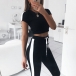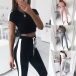 Including a short sleeve round neck crop top and a high waist leggings,this two-piece set not only can give