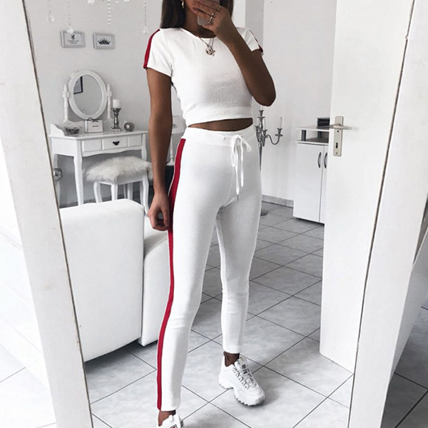 If you are a sports lover,you can choose this two-piece set. Contrast color design makes it look not so simple.