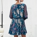 Designed with chic and fashionable printed pattern,the 3/4 trumpet sleeve and lace-up v-neck design