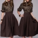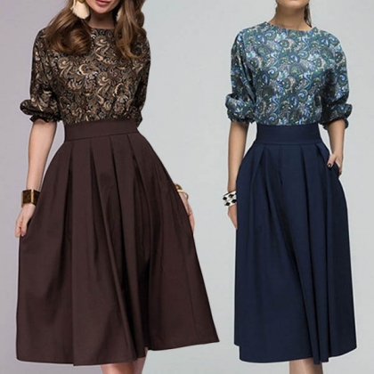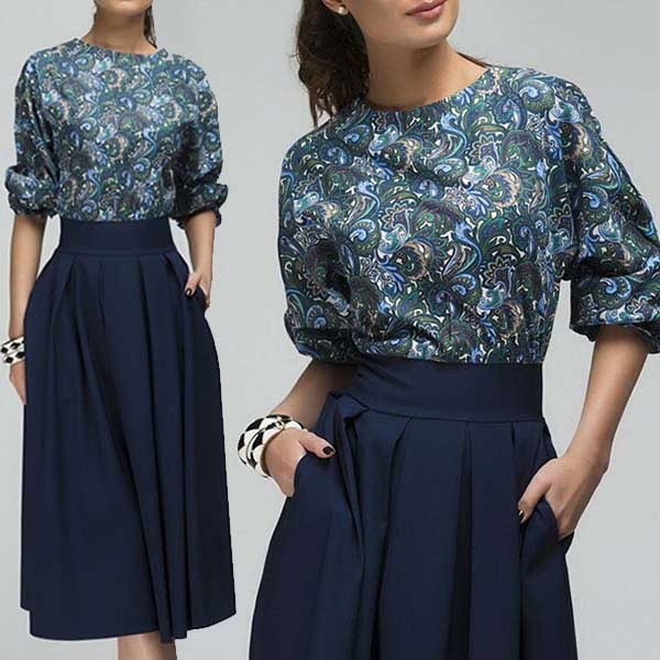 It is finished with 3/4 puff sleeve,round neck and high waist design,the printed spliced details will further