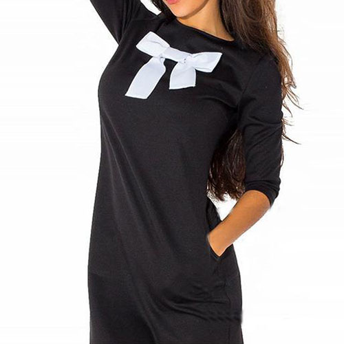 and cozy fabric,with a relaxed silhouette,this dress can give you an all-day comfort. And its bowknot