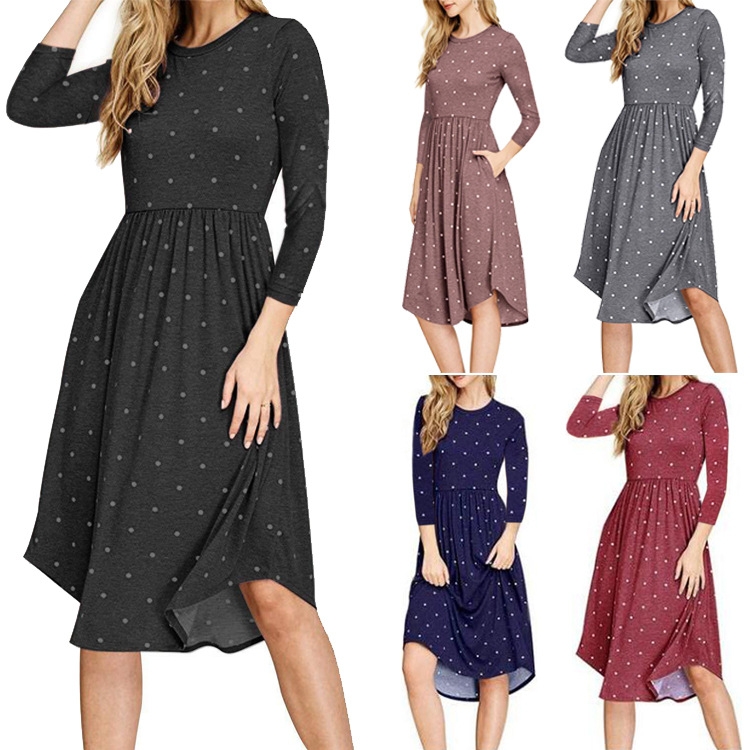 Finished with 3/4 sleeve and round neck design,the dots printed details can lend you a dash of