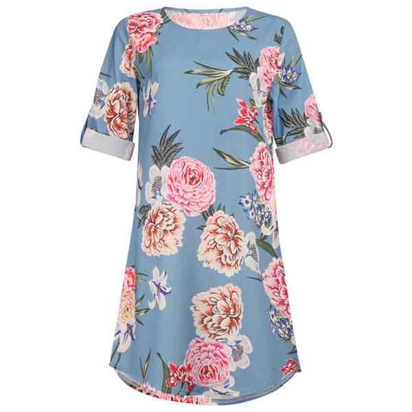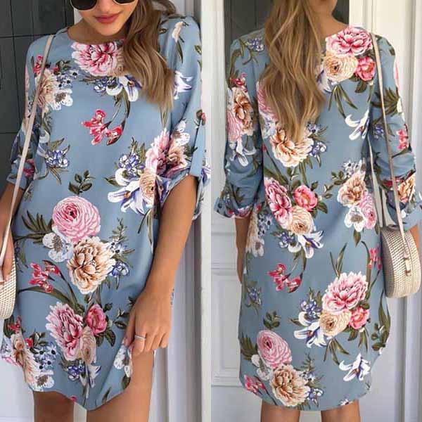 Thanks to the vibrant floral print,you can win more eyes when you wear this dress. It is finished