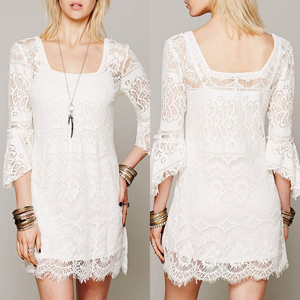 You can easily exude your charming feminine appeal through this lace dress. The 3/4 sleeve and square