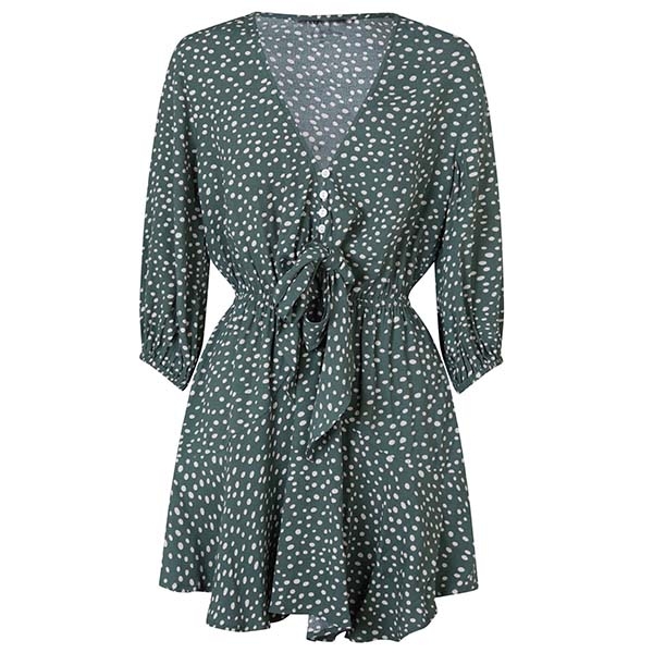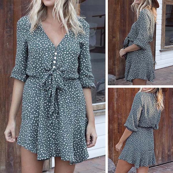 The dots printed design makes it look so eye-catching and playful. Finished with 3/4 sleeve and