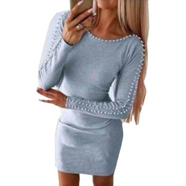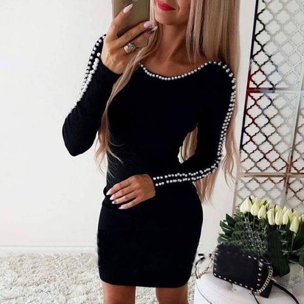 You can easily enhance your feminine appeal when you slip into this long sleeve dress. The beaded