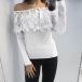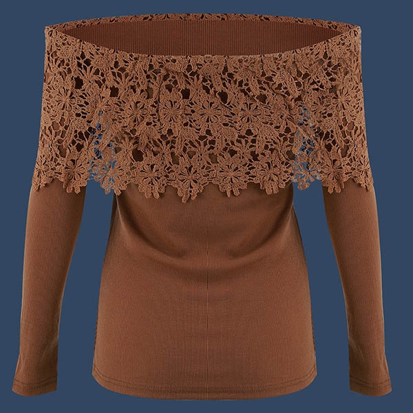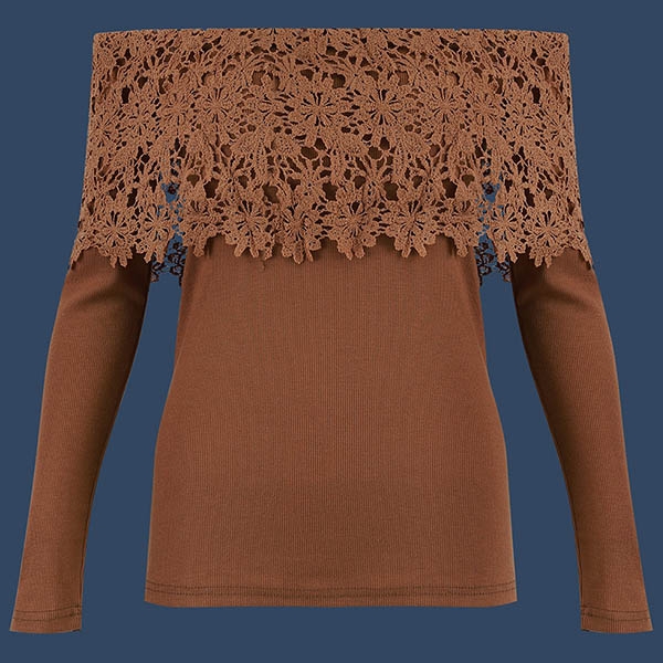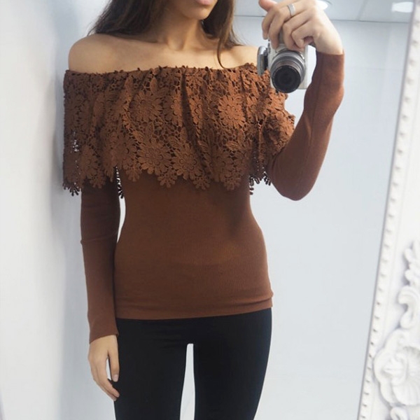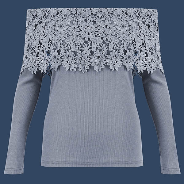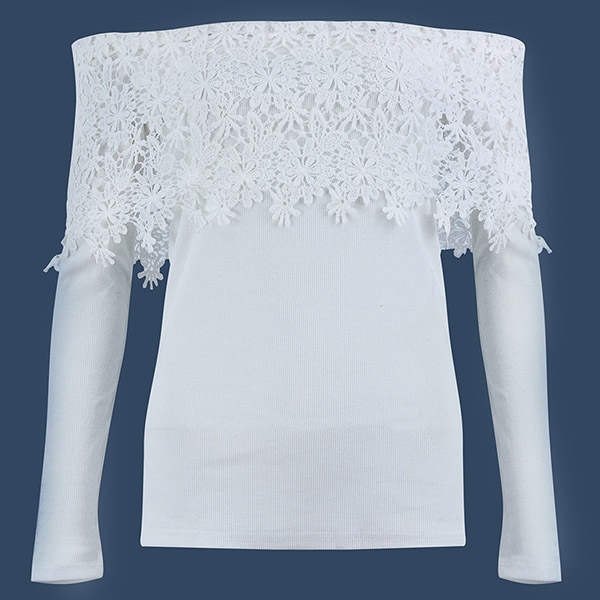 material woven,come with long sleeve and boat-neck.The lace embroidered spliced on the neck ,