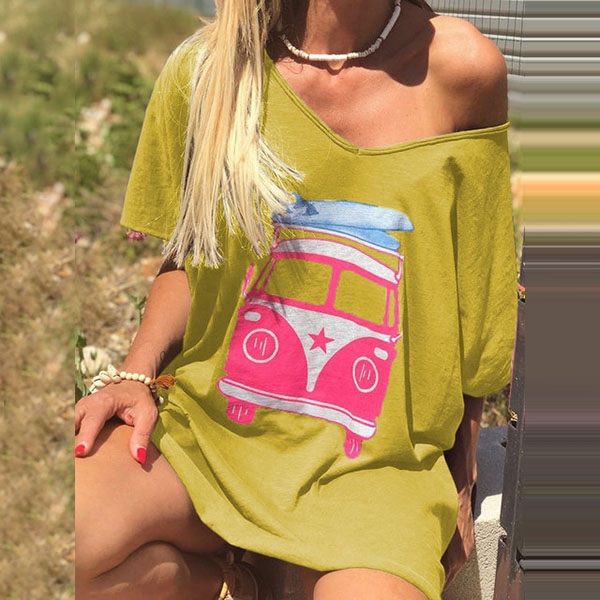 Fashion Bus Printed Short Sleeve Casual T-shirt